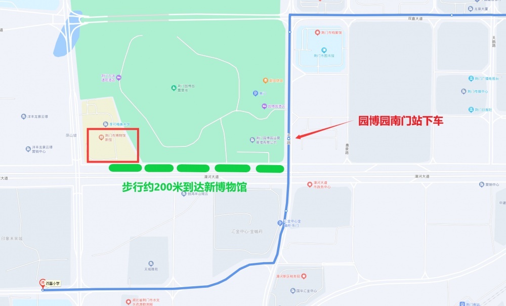 乘坐68路公交車(客運北站東—雙喜小學)到園博園南門站下車,然后沿漳河大道往西步行約200米到達新博物館;68路線運營時間6:12-18:20,班次間隔18-30分鐘。