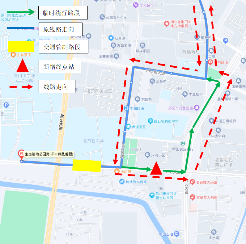 取消站點:掇刀高中、生態(tài)運動公園南(鳳凰香醍)