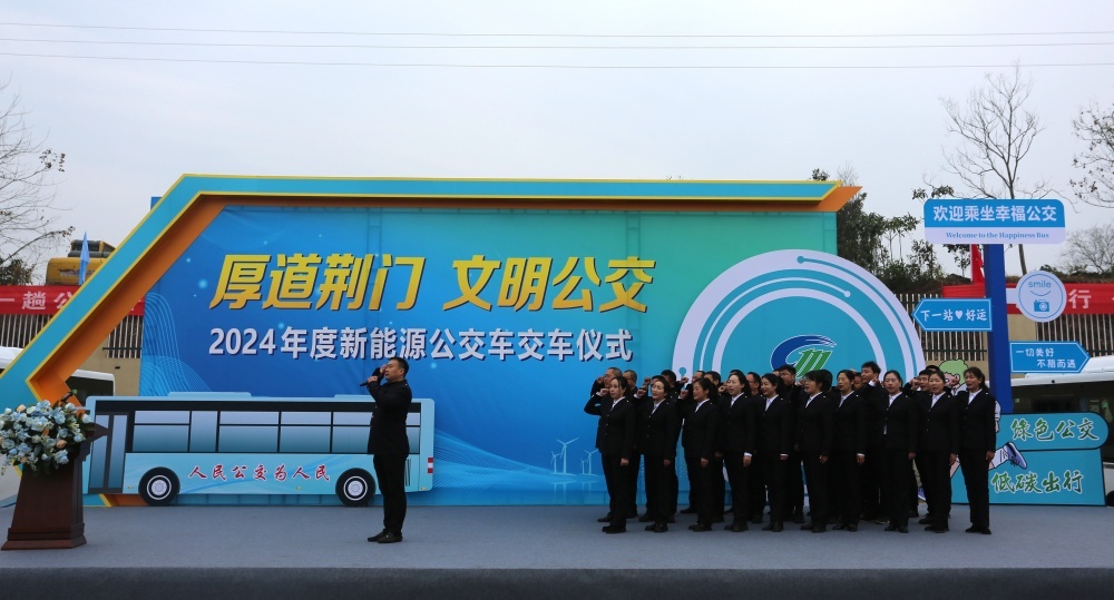 當(dāng)日,我市舉行新能源公交車交付儀式,252臺(tái)新能源公交車正式交付,荊門中心城區(qū)新能源車輛占比一舉達(dá)到95.4%,更新速度、質(zhì)效、數(shù)量位列全省第一方陣,市民乘坐公交出行將更加方便,環(huán)保,也更加時(shí)尚。荊門公交集團(tuán)負(fù)責(zé)人在接過新車鑰匙時(shí)鄭重承諾,將全力運(yùn)營(yíng)好車輛,精心愛護(hù)好車輛,用心服務(wù)好市民。