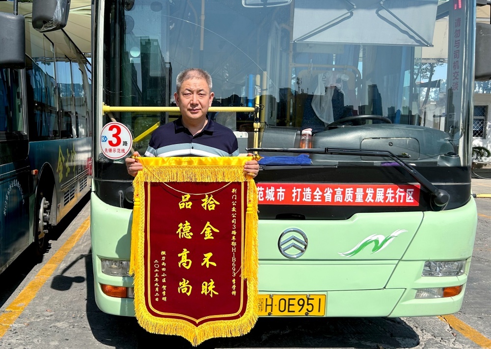 9月4日,市民賀先生拿著一副寫(xiě)有“拾金不昧 品德高尚”的錦旗交給市公交集團(tuán)二公司相關(guān)負(fù)責(zé)人手上,希望轉(zhuǎn)交給3路李學(xué)鋒師傅,言語(yǔ)間滿是感激。
