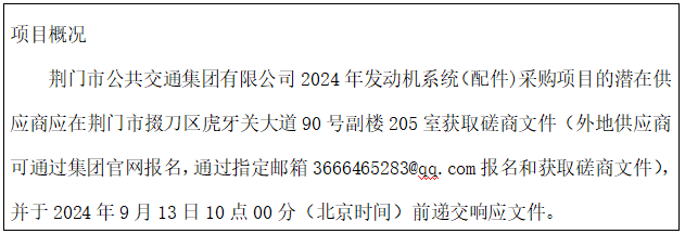荊門(mén)市公共交通集團(tuán)有限公司2024年發(fā)動(dòng)機(jī)系統(tǒng)(配件)競(jìng)爭(zhēng)性磋商公告